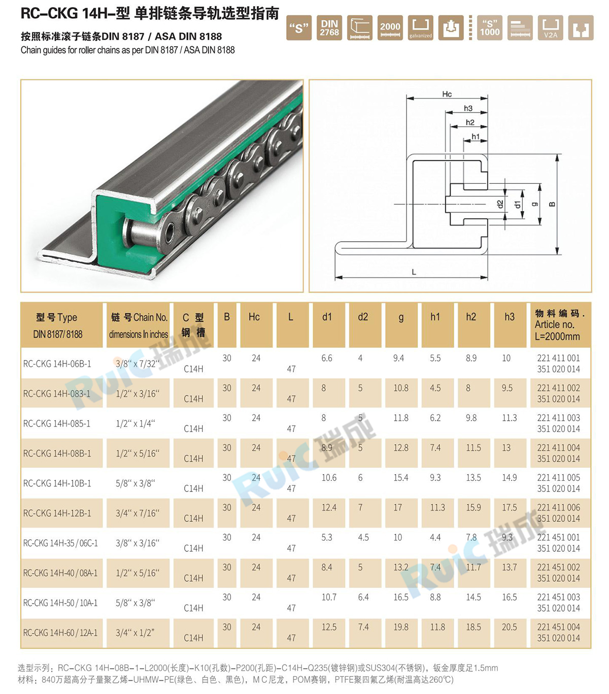 鏈條導軌-鏈條導向件,是一種靜壓導軌,用于支撐和導向鏈條,減少鏈條磨擦,降低噪音,增強鏈條使用壽命。采用840萬超高分子量聚乙烯(UHMW-PE)生產,鏈條導軌具有高耐磨耐溫,抗腐蝕,穩固,降噪音等高精度的支撐與導向。