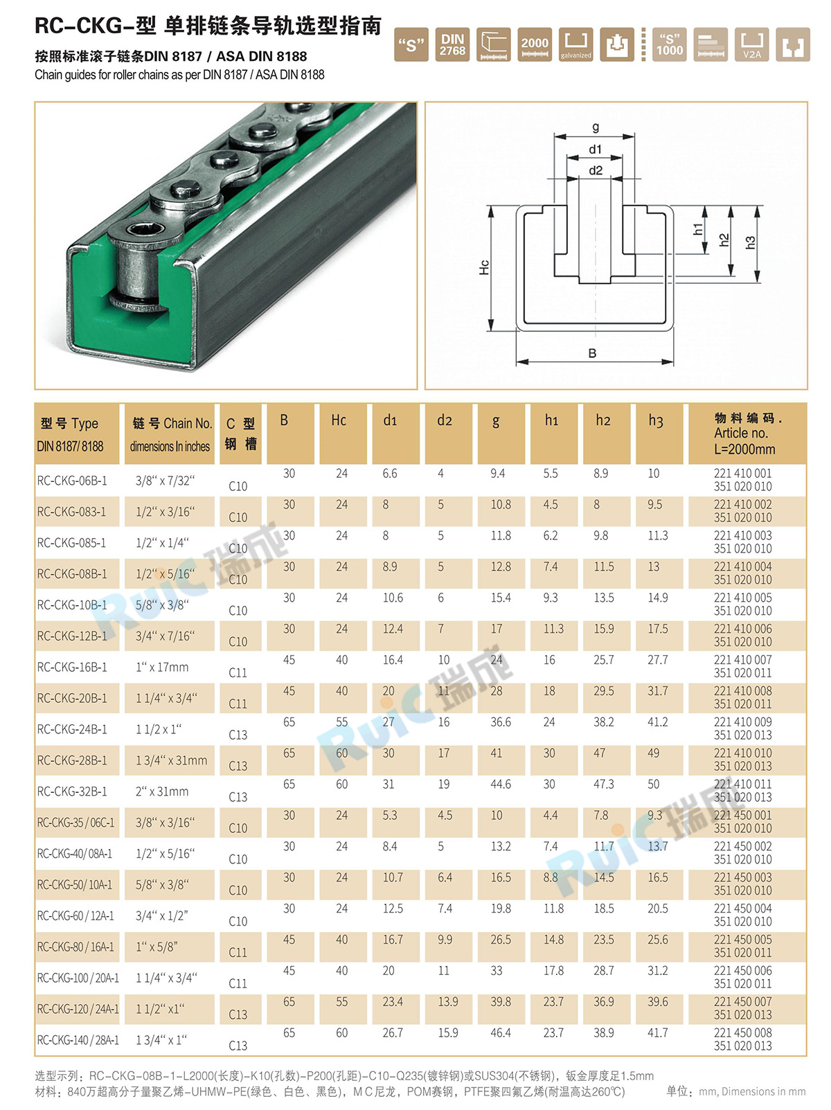鏈條導軌-鏈條導向件,是一種靜壓導軌,用于支撐和導向鏈條,減少鏈條磨擦,降低噪音,增強鏈條使用壽命。采用840萬超高分子量聚乙烯(UHMW-PE)生產,鏈條導軌具有高耐磨耐溫,抗腐蝕,穩固,降噪音等高精度的支撐與導向。