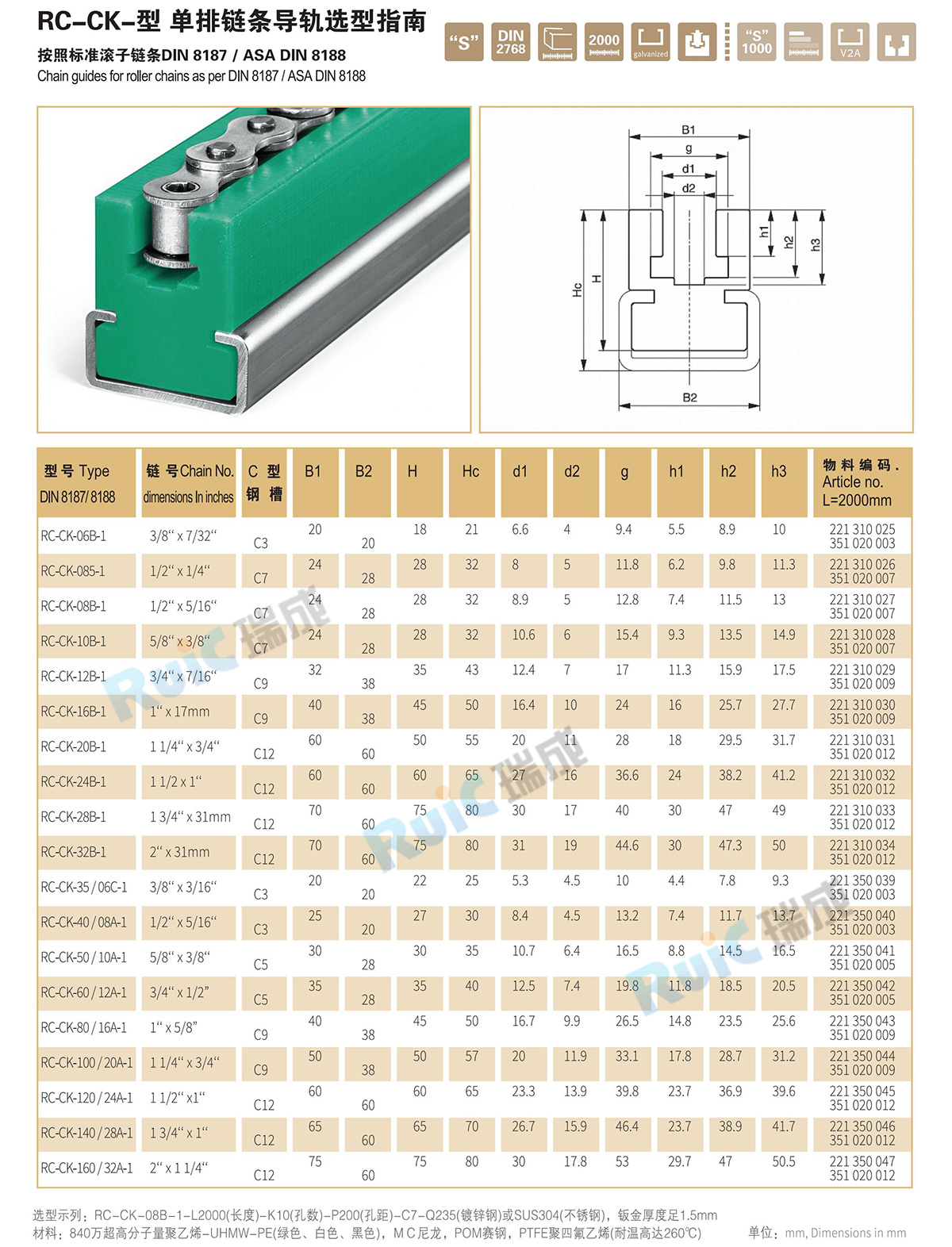 鏈條導軌-鏈條導向件,是一種靜壓導軌,用于支撐和導向鏈條,減少鏈條磨擦,降低噪音,增強鏈條使用壽命。采用840萬超高分子量聚乙烯(UHMW-PE)生產,鏈條導軌具有高耐磨耐溫,抗腐蝕,穩固,降噪音等高精度的支撐與導向。