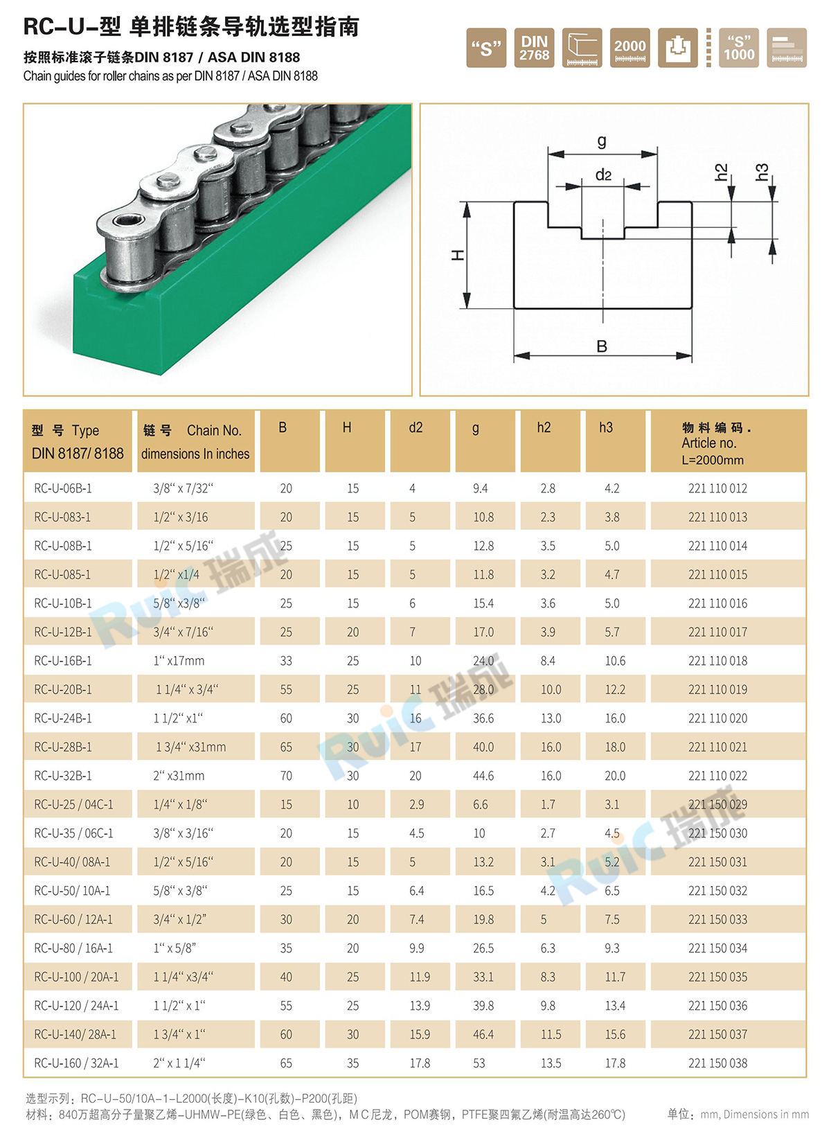 • RC-U-型 單排鏈條導軌