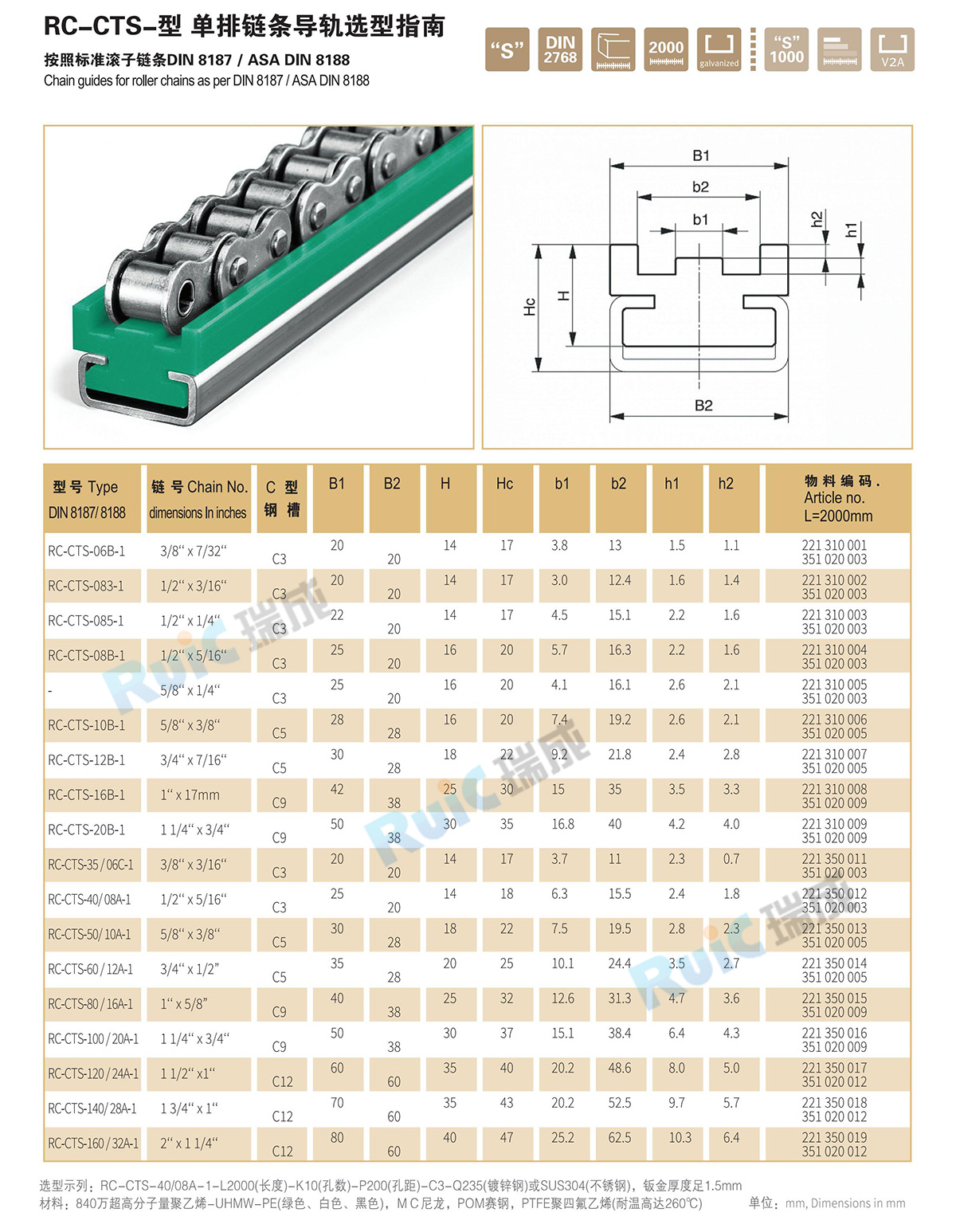 鏈條導軌-鏈條導向件,是一種靜壓導軌,用于支撐和導向鏈條,減少鏈條磨擦,降低噪音,增強鏈條使用壽命。采用840萬超高分子量聚乙烯(UHMW-PE)生產,鏈條導軌具有高耐磨耐溫,抗腐蝕,穩固,降噪音等高精度的支撐與導向。