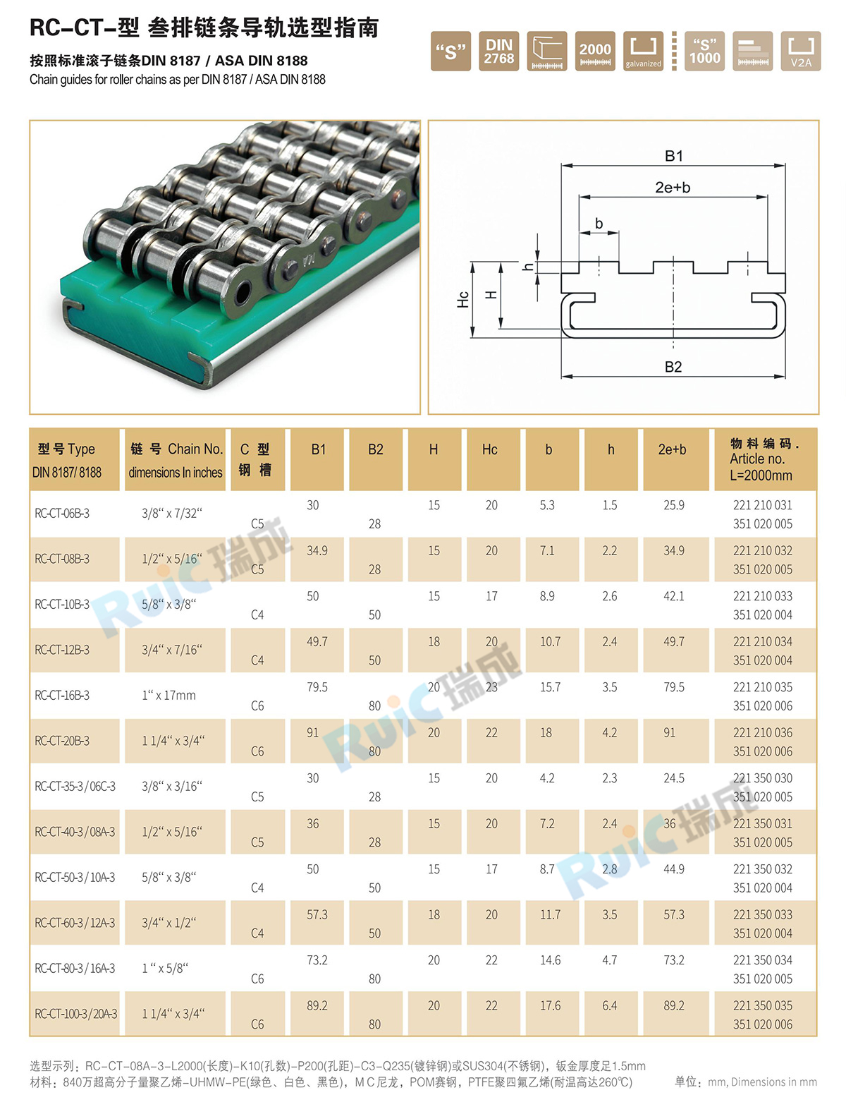 鏈條導軌-鏈條導向件,是一種靜壓導軌,用于支撐和導向鏈條,減少鏈條磨擦,降低噪音,增強鏈條使用壽命。采用840萬超高分子量聚乙烯(UHMW-PE)生產,鏈條導軌具有高耐磨耐溫,抗腐蝕,穩固,降噪音等高精度的支撐與導向。