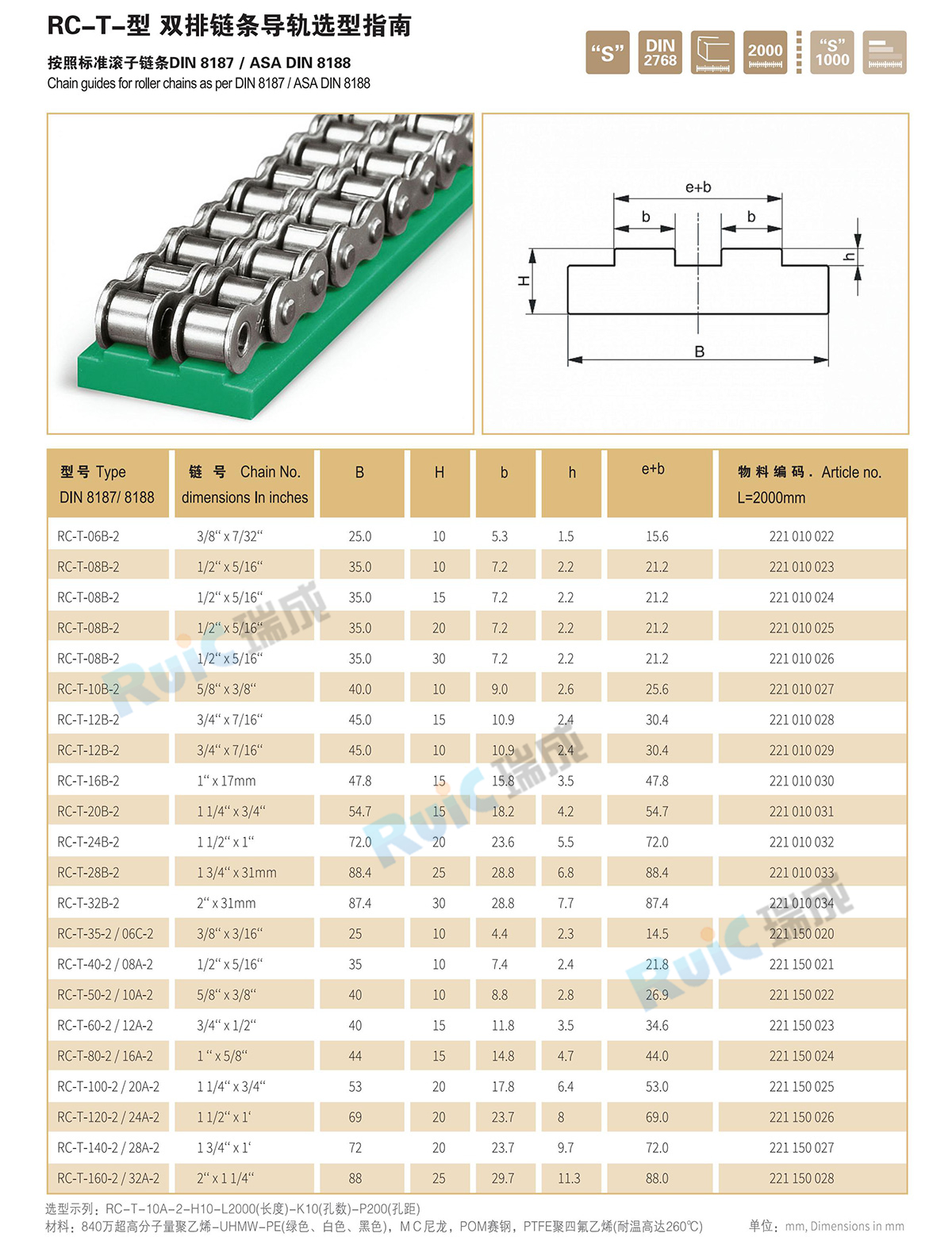 鏈條導軌-鏈條導向件,是一種靜壓導軌,用于支撐和導向鏈條,減少鏈條磨擦,降低噪音,增強鏈條使用壽命。采用840萬超高分子量聚乙烯(UHMW-PE)生產,鏈條導軌具有高耐磨耐溫,抗腐蝕,穩固,降噪音等高精度的支撐與導向。