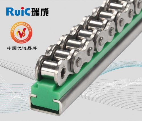 其中,超高分子量聚乙烯極高的分子量賦予瑞成工業鏈條導軌優異的使用性能。這一材料屬于性能優良的熱塑性工程塑料,幾乎集中了各種塑料的優點,具有普通聚乙烯和其它工程塑料無可比擬的耐磨、耐沖擊、自潤滑、耐腐蝕、吸收沖擊能、耐低溫、不易粘附、不易吸水、密度較小等綜合性能?;谒邪l生產的鏈條導軌,可用于支撐和導向鏈條、減少鏈條摩擦、降低噪音、增強鏈條的使用壽命,廣泛應用于每一個行業的傳動鏈,皮帶或鏈條驅動裝置或產品傳輸。